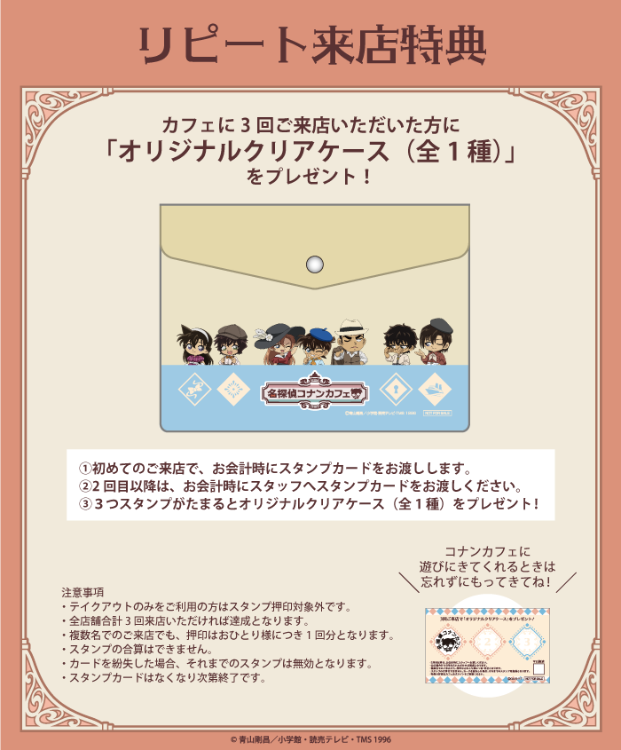 カフェに3回ご来店いただいた方に、「オリジナルクリアケース(全1種)」をプレゼント。