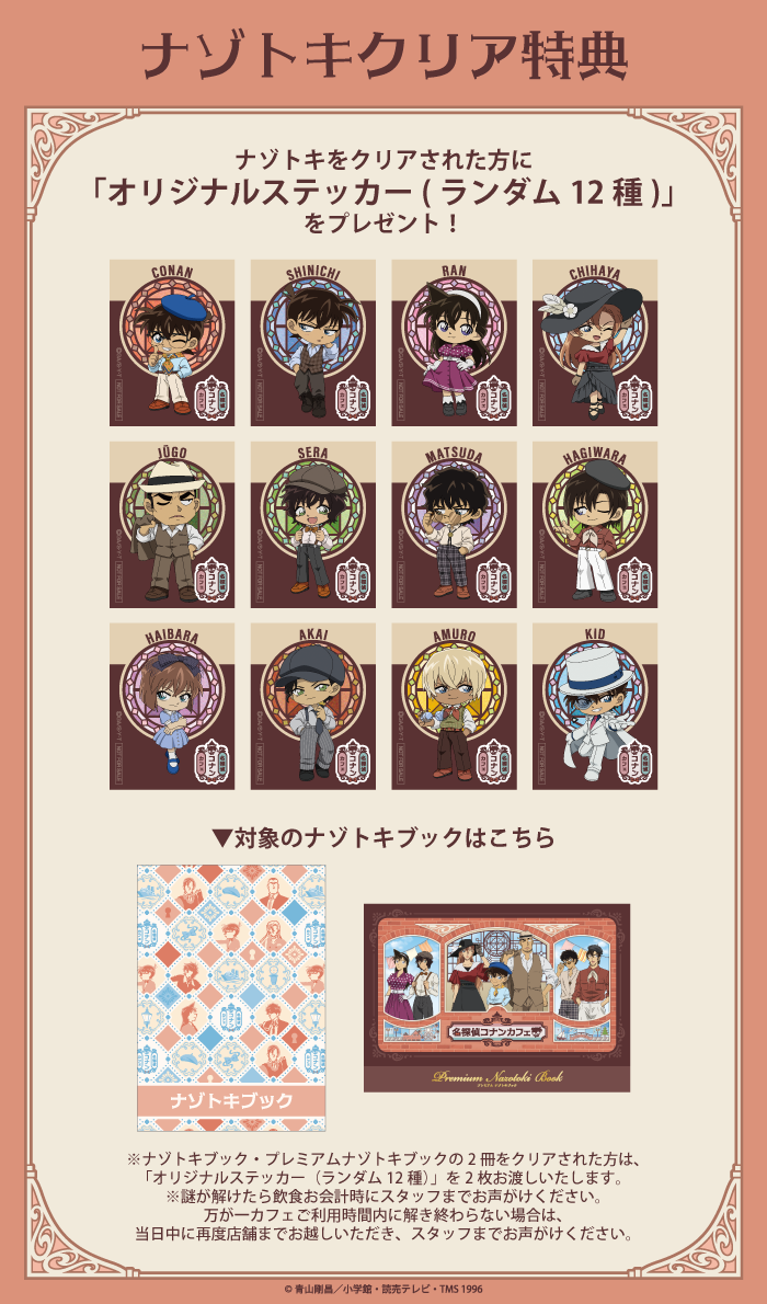 ※ナゾトキブック・プレミアムナゾトキブックの2冊をクリアされた方は、オリジナルステッカーを2枚お渡しいたします。